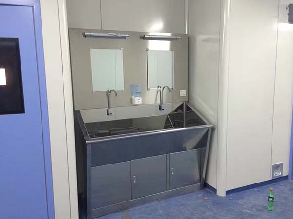 靈潔公司設計的醫用不銹鋼洗手池 ,依據人體工程學完美設計,供醫護人員/使用員工作前后洗手,本品全進口304#不銹鋼制作,內槽前后左右全圓角斜面設計,光亮無死角,不綻水,不藏垃圾細菌,通過感應部件,人手接近時自動出水,離開時自動停水,并裝有熱水裝置,可調節出水溫度。可選擇帶玻璃鏡/或者落地/掛墻式