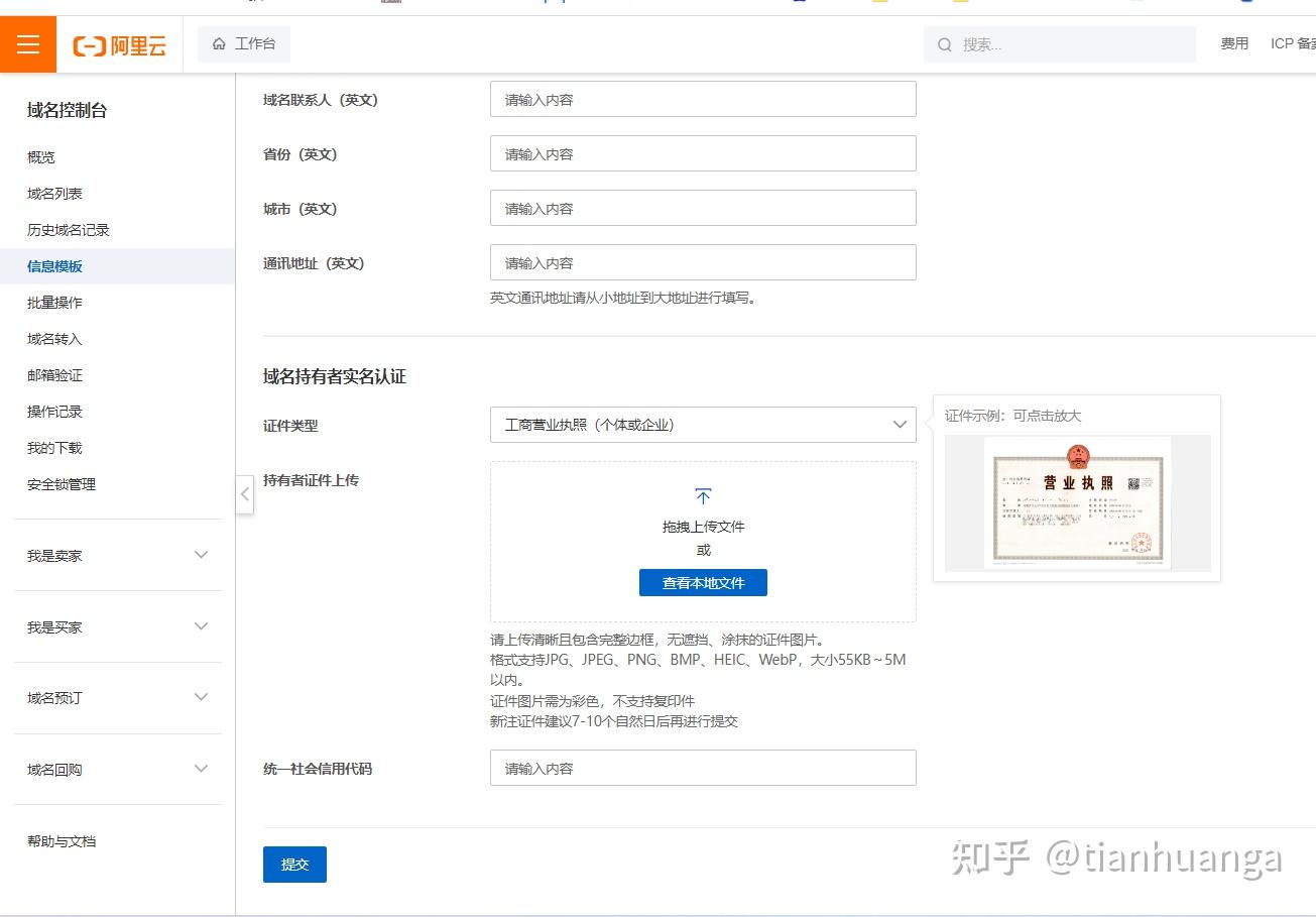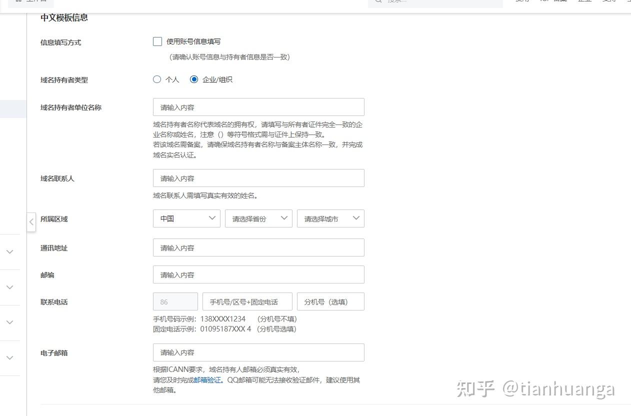 域名持有者需要和阿里云賬號實名者信息保持一致,我這里以企業(yè)為例,講解一下