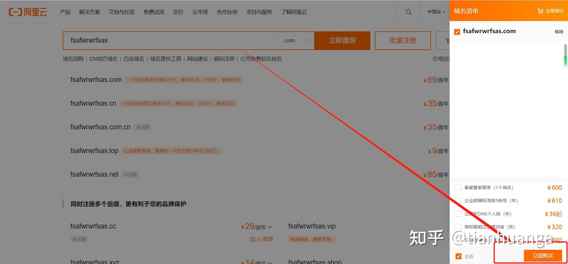 選擇自己想要的域名,然后加入購物車