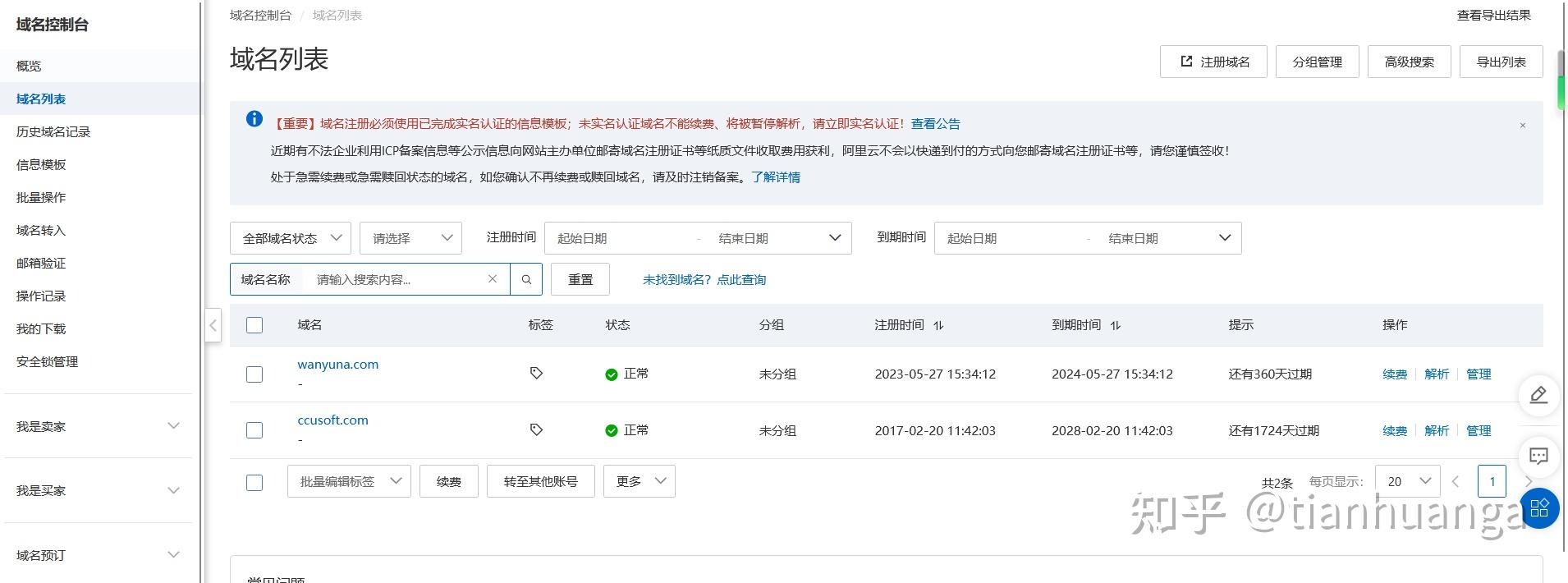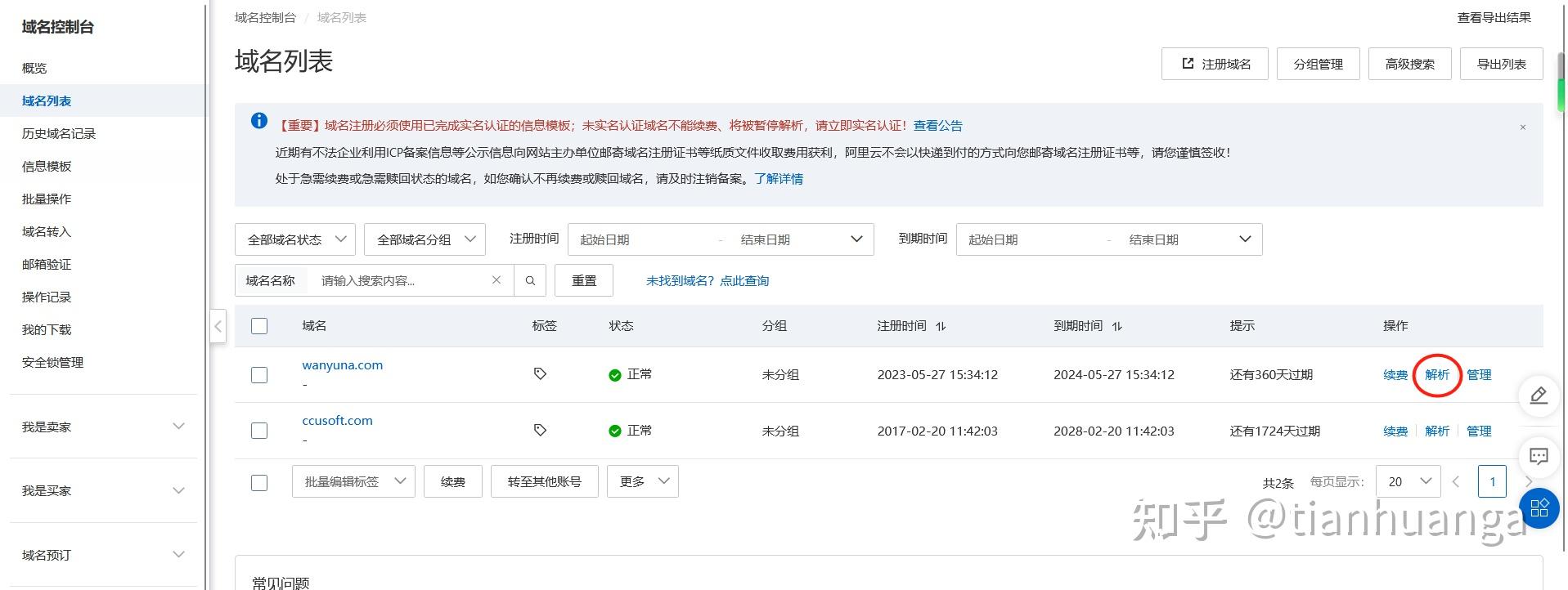 這樣在你的域名控制臺就可以看到你注冊的域名了。