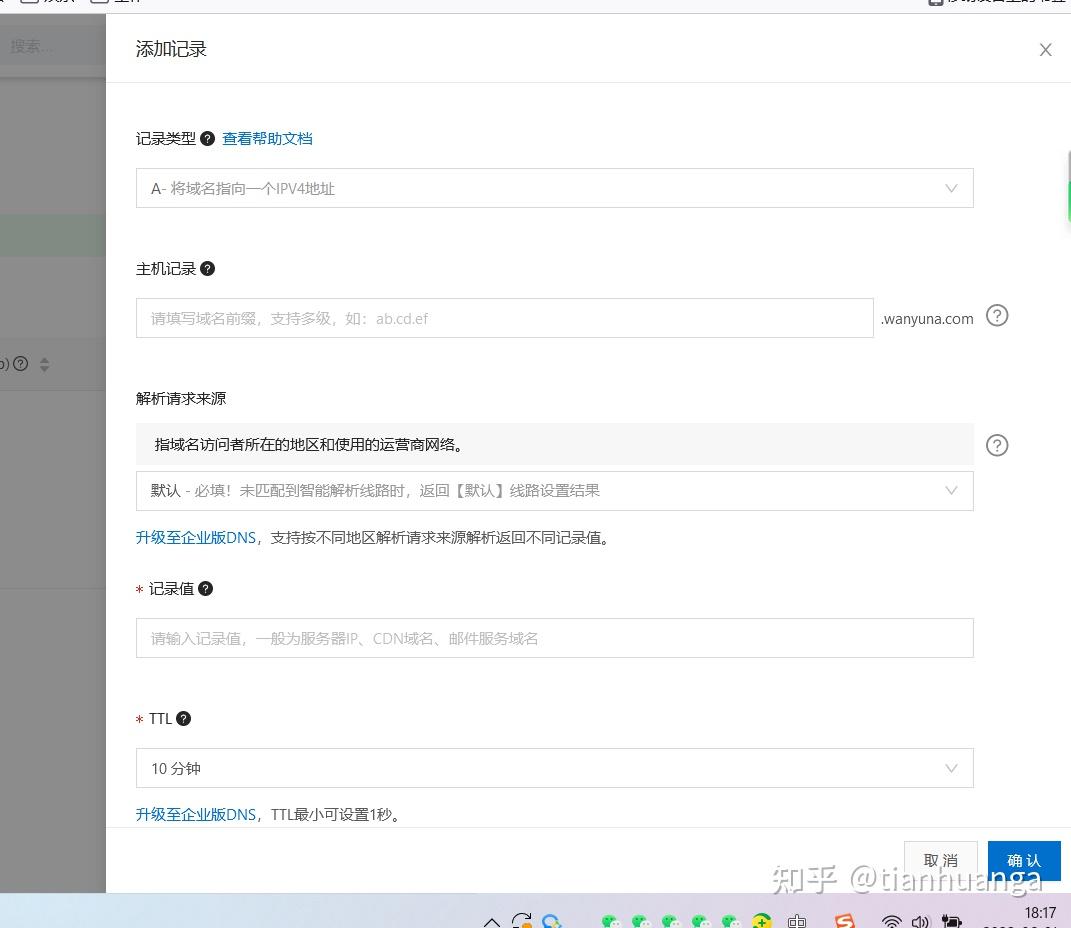 填寫:主機記錄,選擇:記錄類型,填寫:記錄值(這里填寫的服務(wù)器IP)