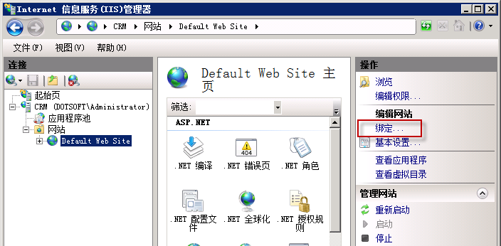點(diǎn)擊網(wǎng)站下的站點(diǎn)名稱,點(diǎn)擊右則的綁定