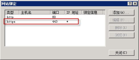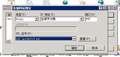 添加網(wǎng)站綁定內(nèi)容:選擇類型為https,端口443和指定對應(yīng)的SSL證書,點(diǎn)擊確定